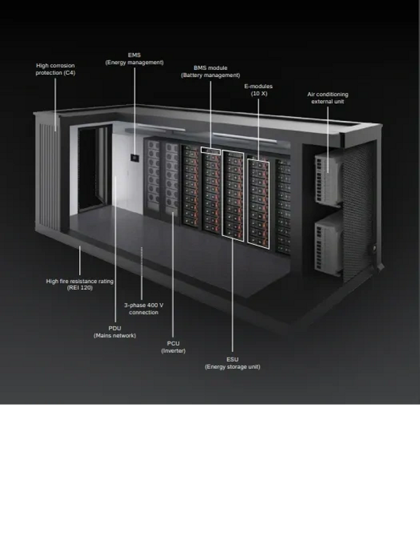 The BE&E BESS is a premium outdoor solution, featuring a robust and secure container design.